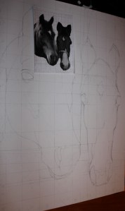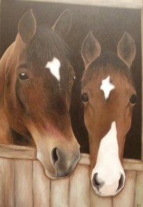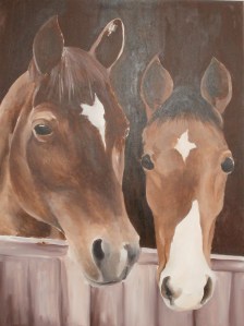For et års tid siden fikk jeg en forspørsel om å male et bilde for Lene A.Olsen, en venninne av en venninne. Hun ønsket et maleri av sine to tidligere hester som hun dessverre hadde måttet avlive. Et minne om hestene hun var så glad i. Å skulle male hester virket som en spennende utfordring som jeg gjerne ønsket å begi meg utpå. Men hadde jeg tid til det? Andre året på NKF stod for dør og jeg visste at dette skulle bli et travelt år med mye å gjøre på skolen og jobb. Jeg måtte derfor si ja med forbehold om at det kunne ta en god stund før jeg fikk gjort det ferdig ettersom jeg egentlig ikke visste helt når jeg skulle få gjort det. Det var greit for henne, så da var oppdraget på plass.