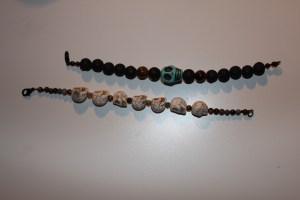 Jeg har brukt svart smykkewire og lås på alle armbåndene og perler fra Panduro Hobby.