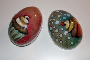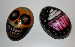 I går fant jeg frem samlingen av tusjepenner og tusjer for å prøve ut hvordan det ville bli å tegne på påskeegg. Eggene jeg bruker er Panduro Hobby udekorerte delbare påskeegg. Jeg ble veldig fornøyd med gårsdagens prosjekt og det var artig å bruke et annerledes underlag for pennen enn hva jeg er vant til. Da jeg kom hjem fra jobb i dag kastet jeg meg i meg litt mat før jeg satte i gang med nye eggekunstverk, og slik ble de: