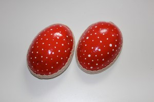 Som jeg har nevnt tidligere følger det også med noen små søte egg når jeg kjøper en 3pakning med delbare pappegg hos Panduro. Disse blir veldig søte i lyse pastell farger med små hvite mønstre på – og gjerne dekorert med litt blomster og halvperler: