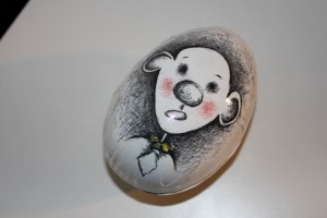 I jakten på nye motiv til min lille ‘eggeperiode’ fant jeg ut at jeg ville lage et klovne egg inspirert av Aulie. Men jeg ville bruke blyanten fremfor maling og pensel. I motsetning til hennes rike fargebruk ville jeg tone det ned og kun bruke enkle fargeinnspill. Jeg falt litt for stilen som jeg brukte på Monroe egget og ville derfor jobbe videre med den. Og slik ble mitt klovneegg: