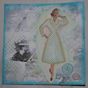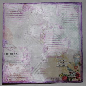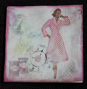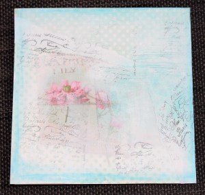 Art journaling er rett og slett en kunstnerisk dagbok hvor en slår seg løs og leker seg med ulike teknikker og visuelle uttrykk med og uten tekst. Utrolig mye spennende. Teknikken er stortsett såkalt mixed media, som rett og slett er en god blanding av maling, decoupage, scrapping++; en blander de teknikker en ønsker i det øyeblikket – bruker det en har og lager utrolig spennende og varierte uttrykk. Helt fantastisk spennende og inspirerende. Jeg har spesielt falt for to kunstner sjeler med hver sitt uttrykk: de kaller seg for littleglimpses og rachO113. Jeg får veldig lyst å prøve ut alt mulig når jeg ser på videoene deres, men nå har det seg slik at det meste av utstyr har blitt pakket ned allerede, så utvalget av materialer blir noe begrenset. Det eneste jeg ikke har pakket helt bort enda er en kasse med kortlaging og scrapping utstyr; med stempler, kort, designark og noen pensler. Jeg har også en boks med Gesso stående og en liten slant decoupage. Så frem til jeg finner frem til lerreter og mer maling får jeg nøye meg med å leke med litt mixed media på kort.