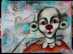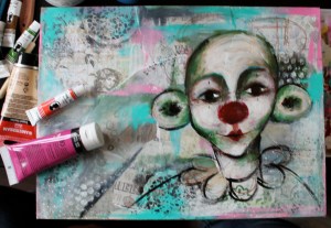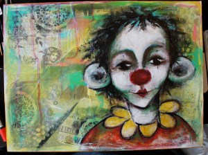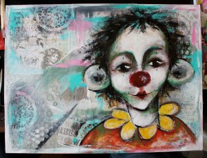 12. Et påbegynt klovneansikt. På de neste bildene kommer motivet frem og bildet ferdiggjøres: