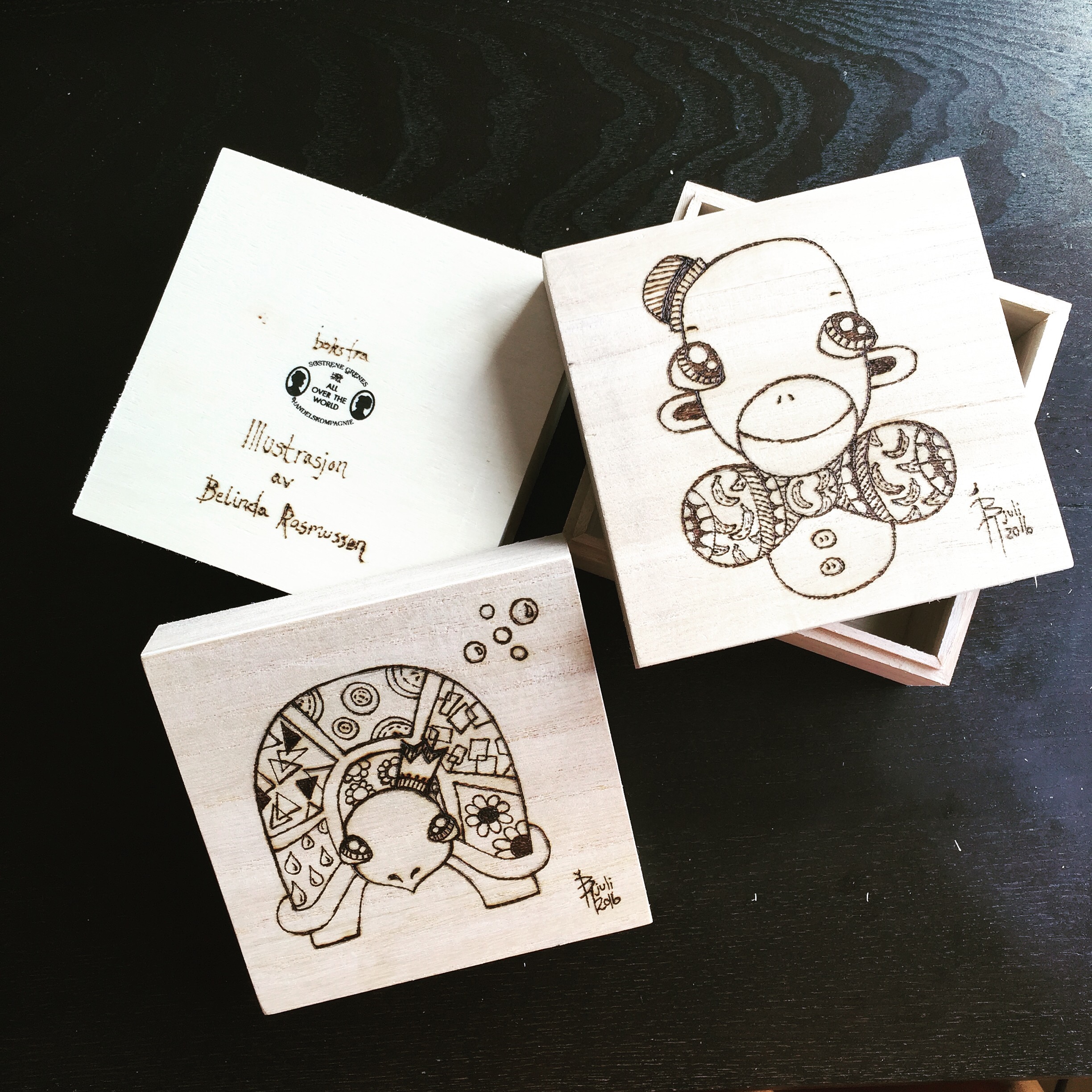 Hadde en liten plan om å vaske leligheten denne morgenen – men…. Fikk kjøpt meg to nye trebokser i går fra søstrenegrene, så da ble vaskingen noe mer uinterressant. Skisset opp motivene i går kveld og boksene var derfor klar for litt svimerking i morges. Og to bokser har blitt dekorert i morgentimene. Kjekke bokser som kan romme en liten hemmelighet, og i tillegg stå på høykant og fungere som et dekorerende bilde på f.eks. barnerommet.