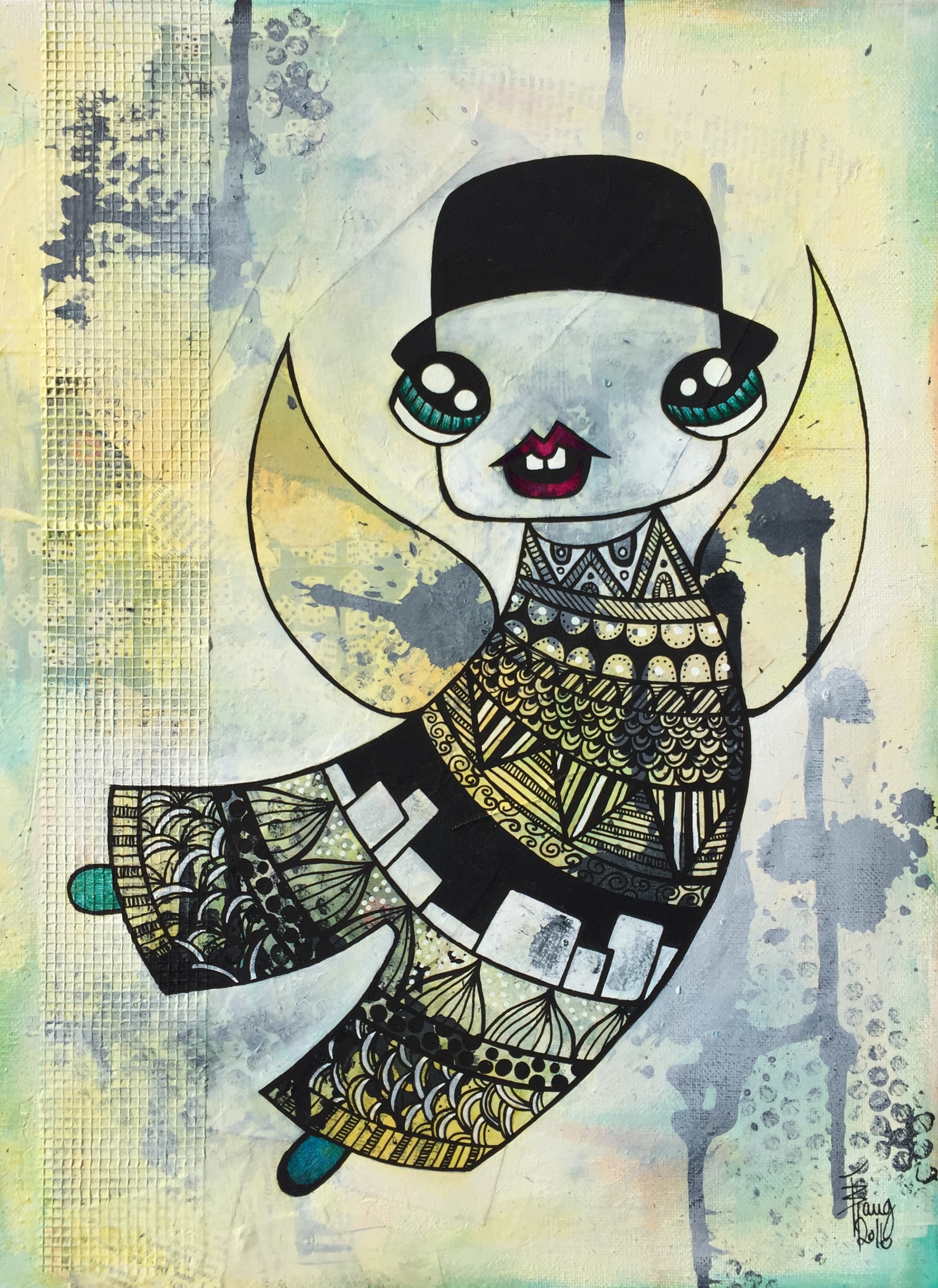 En engeldude. Mixedmedia på lerret, 30x40cm.