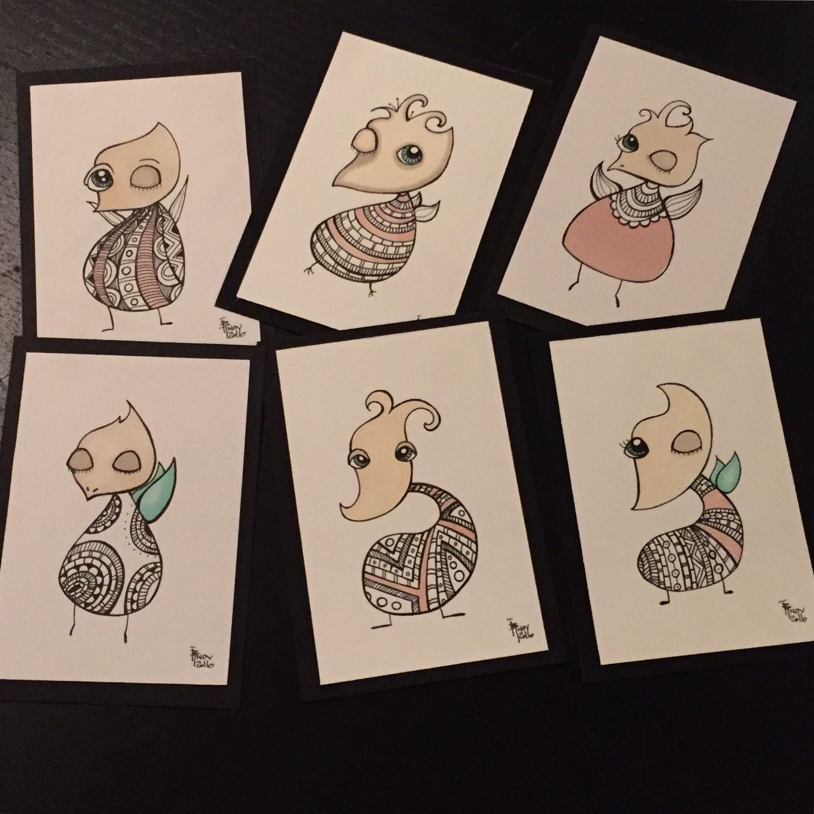 Siste dag i årets November og plutselig er det jul. I morgen har jeg årets siste eksamen og de siste ukene har det blitt endel lesing og forberedelse, men jeg har hatt litt tid til kreative stunder også. Her er noen av kortene jeg har tegnet den siste måneden: