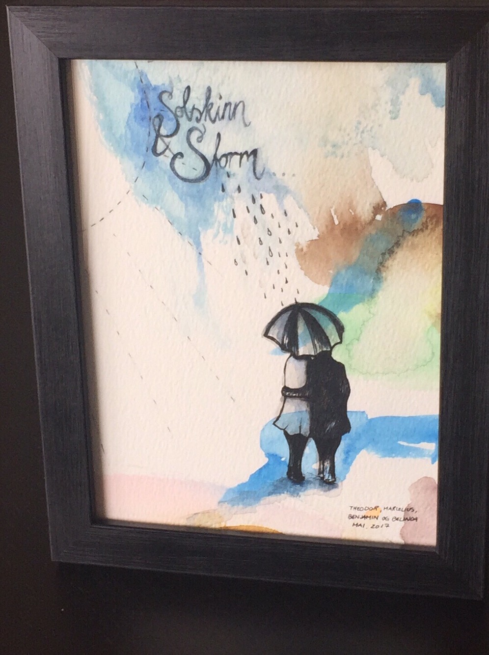 På tampen dukket det imidlertid opp et lite kreativt innslag til bloggen. På 17.mai hadde jeg besøk av mine søstre med familie, og mine tre super flinke nevøer fikk slå seg løs med litt akvarellmaling. Noen dager etter når bildene var tørket satt jeg å så på disse bildene, og så at diverse utsnitt kunne utgjøre både flotte bilder og kort. I anledning feiringen av mine foreldres 60års dag tok jeg et utsnitt fra guttenes mesterverk og laget til et lite bilde til mamma og pappa (mormor og morfar). To flotte individer som alltid er der for oss, i solskinn og storm. Slik ble bildet: