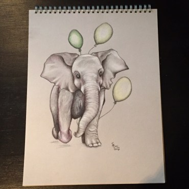Så grublet jeg litt på hva jeg skulle tegne neste gang. Gjerne et dyr. Etter å ha tenkt litt fant jeg ut at jeg skulle prøve meg på en elefant. Jeg lette etter inspirasjonsbilder på nett (da jeg ikke har gode bilder av elefant liggende klar i hodet), og fant flere søte babyelefanter. Den første elefanten ble slik: