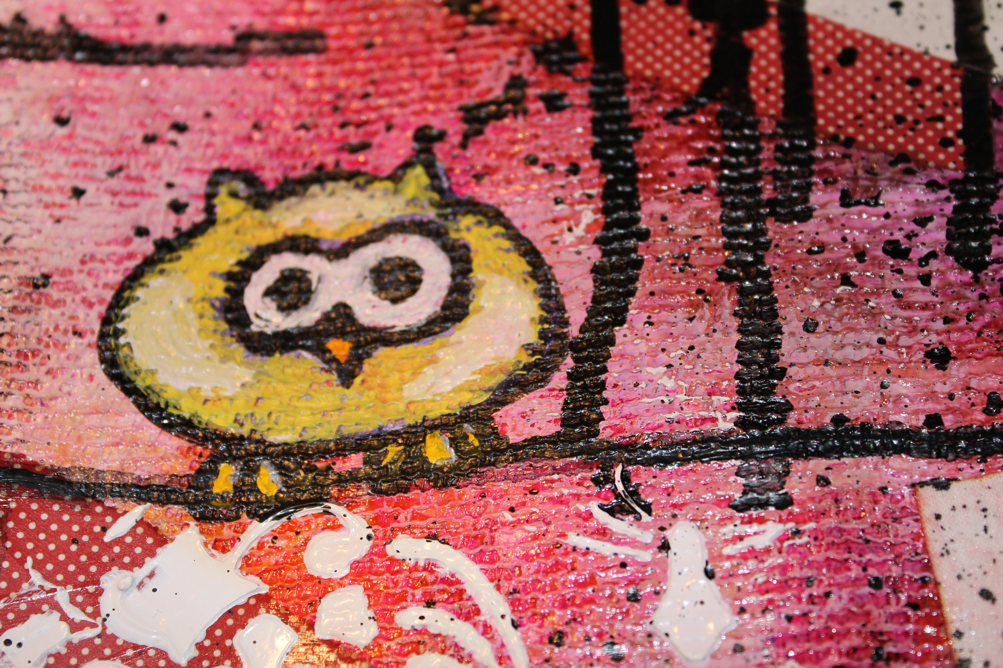 punchella, gesso, golden matt medium, akryl, et gammelt strikkemønster, blyant, inktense, vannløslige fargestifter, posca pen ++
