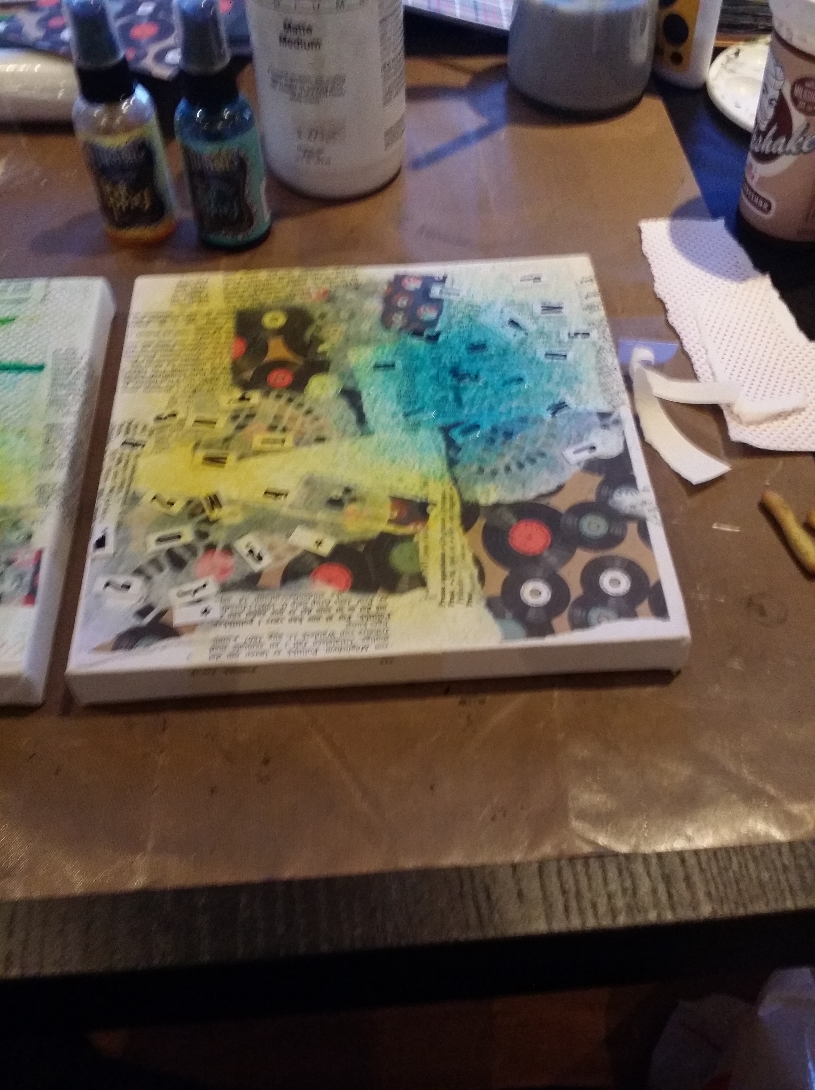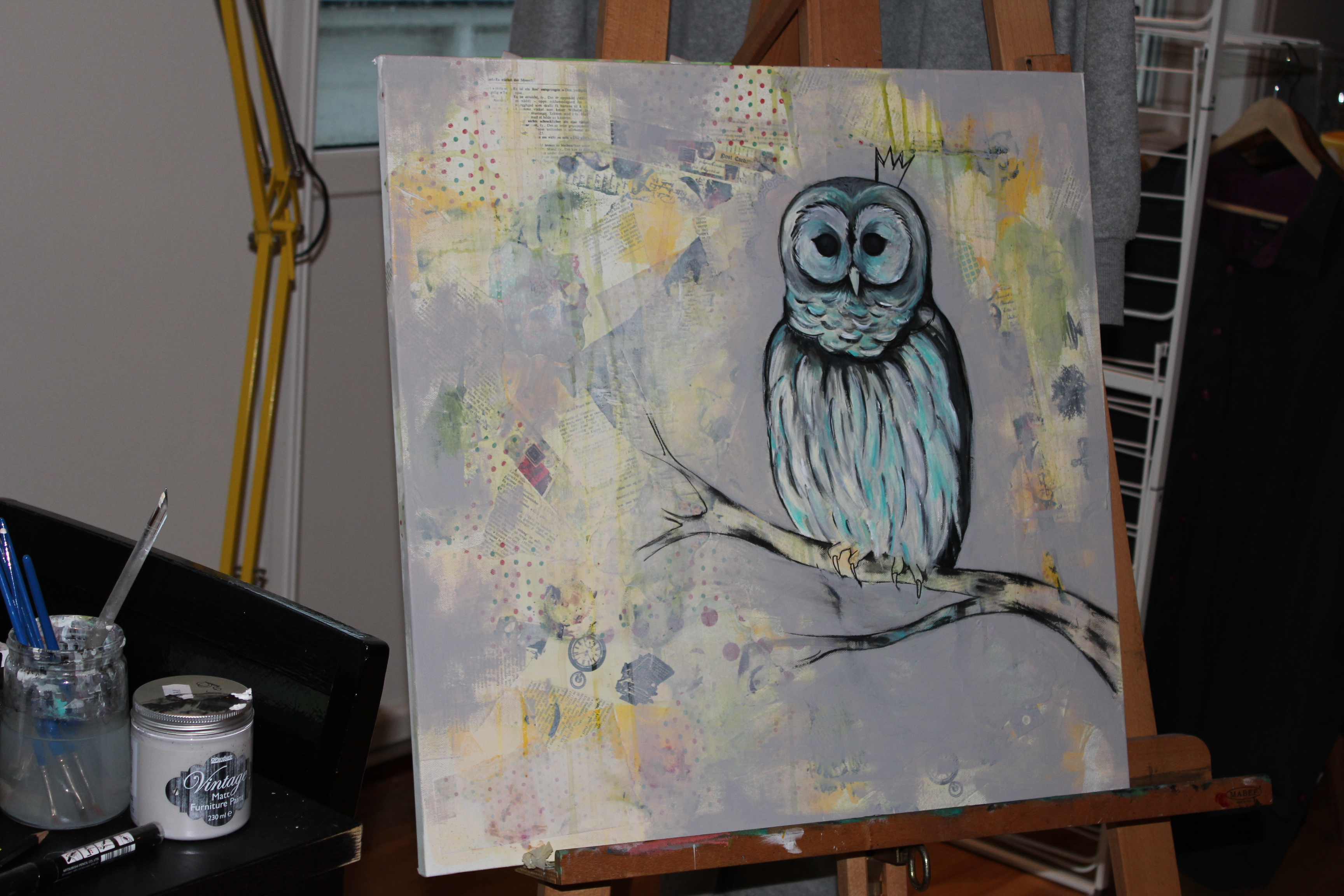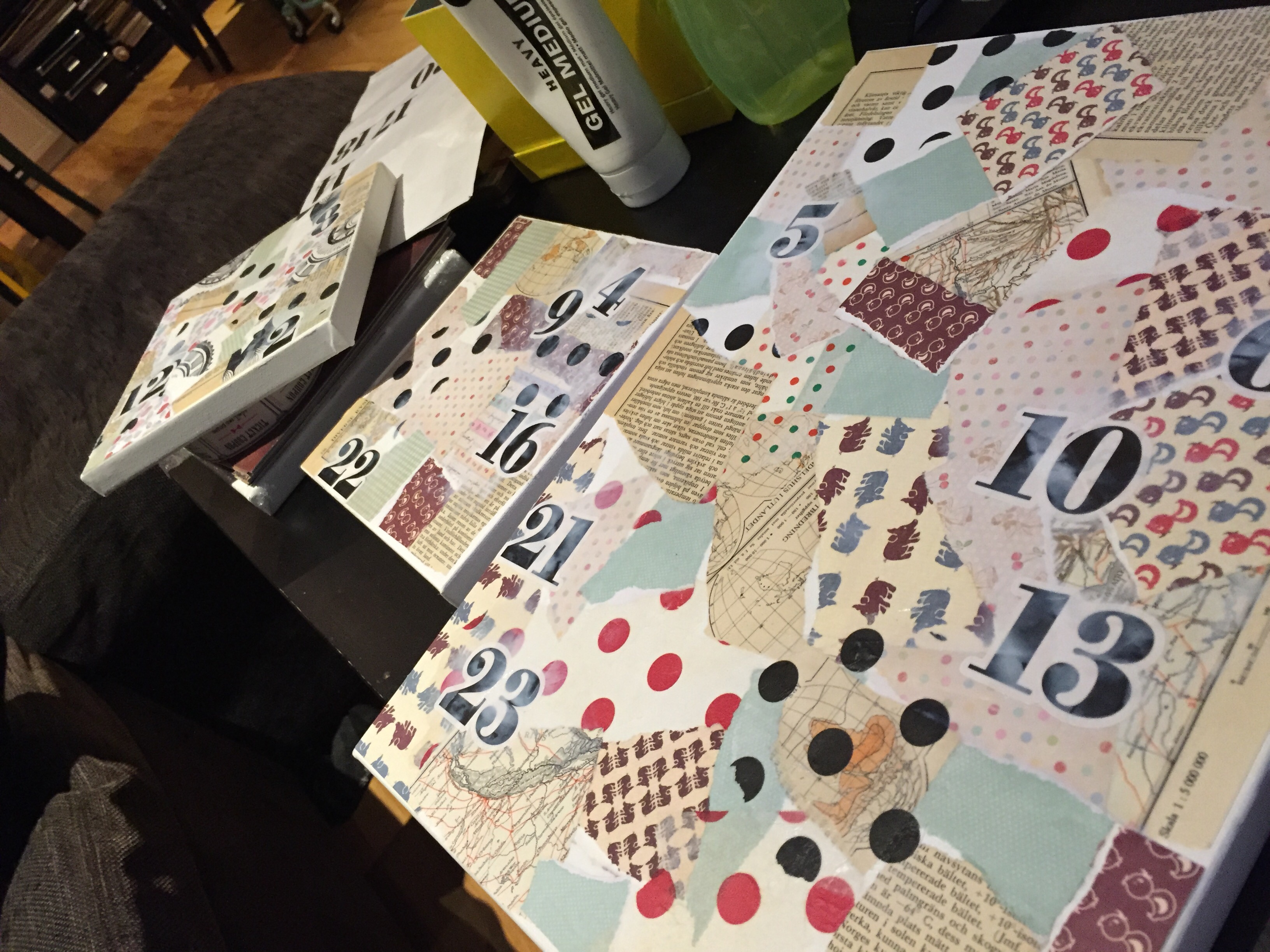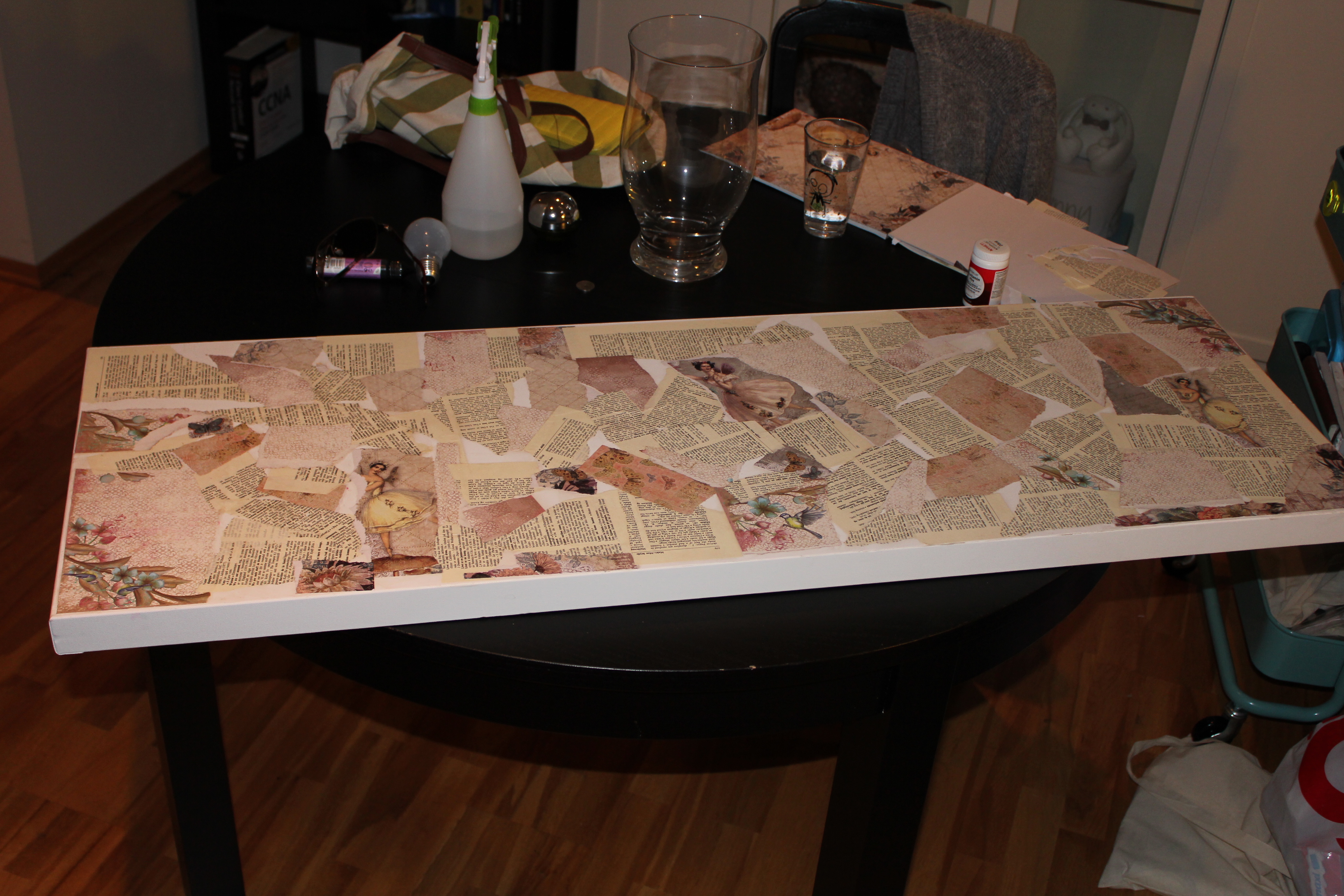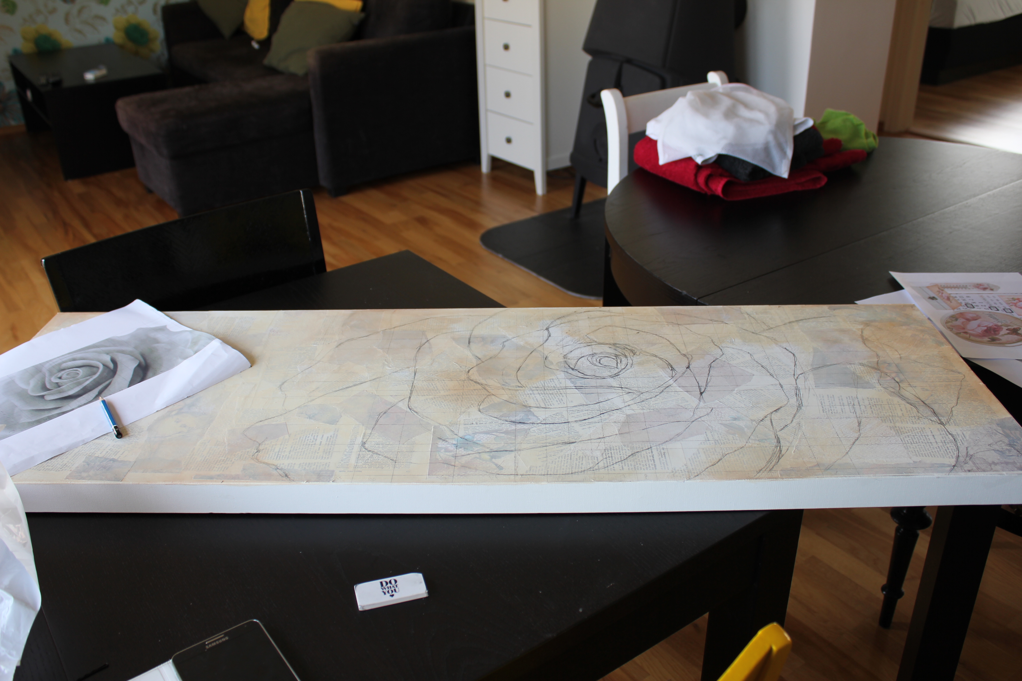 På videoen under fra instagramkontoen min er jeg igang med et nytt prosjekt. Litt usikker på hva det skal bli tilslutt, men noe blir det. Forelpig er det et 50x100cm lerret halvveis dekket med collage: