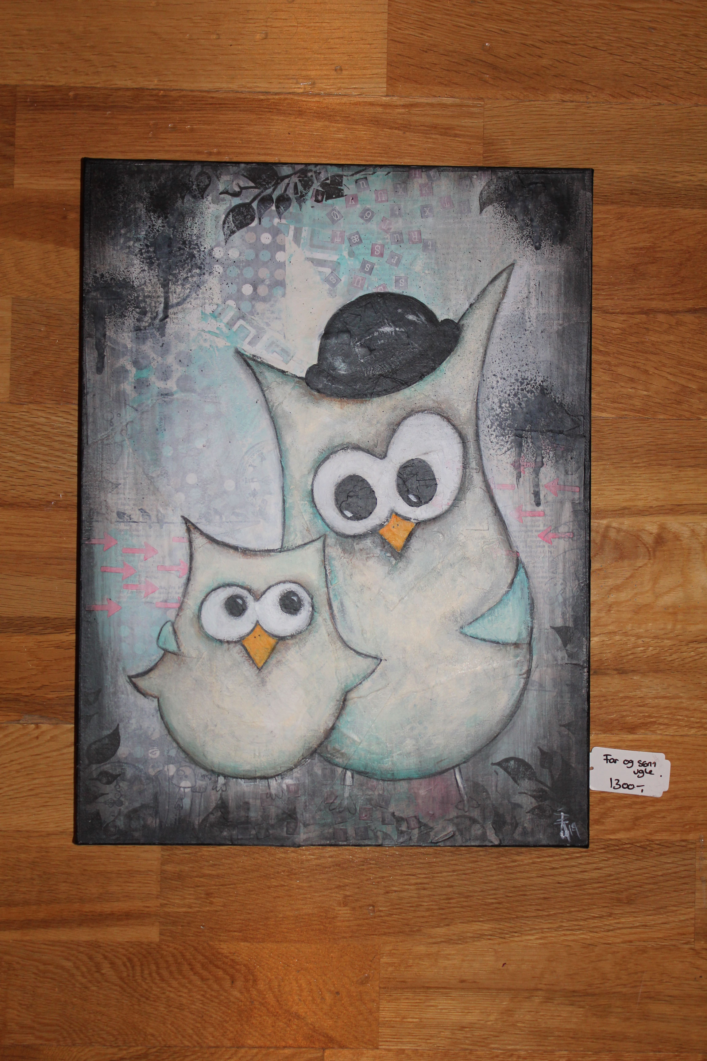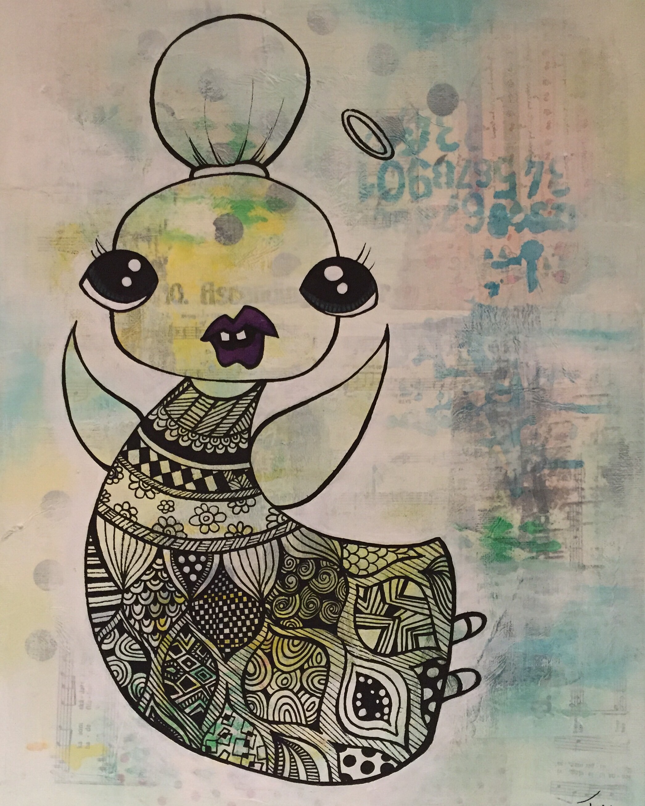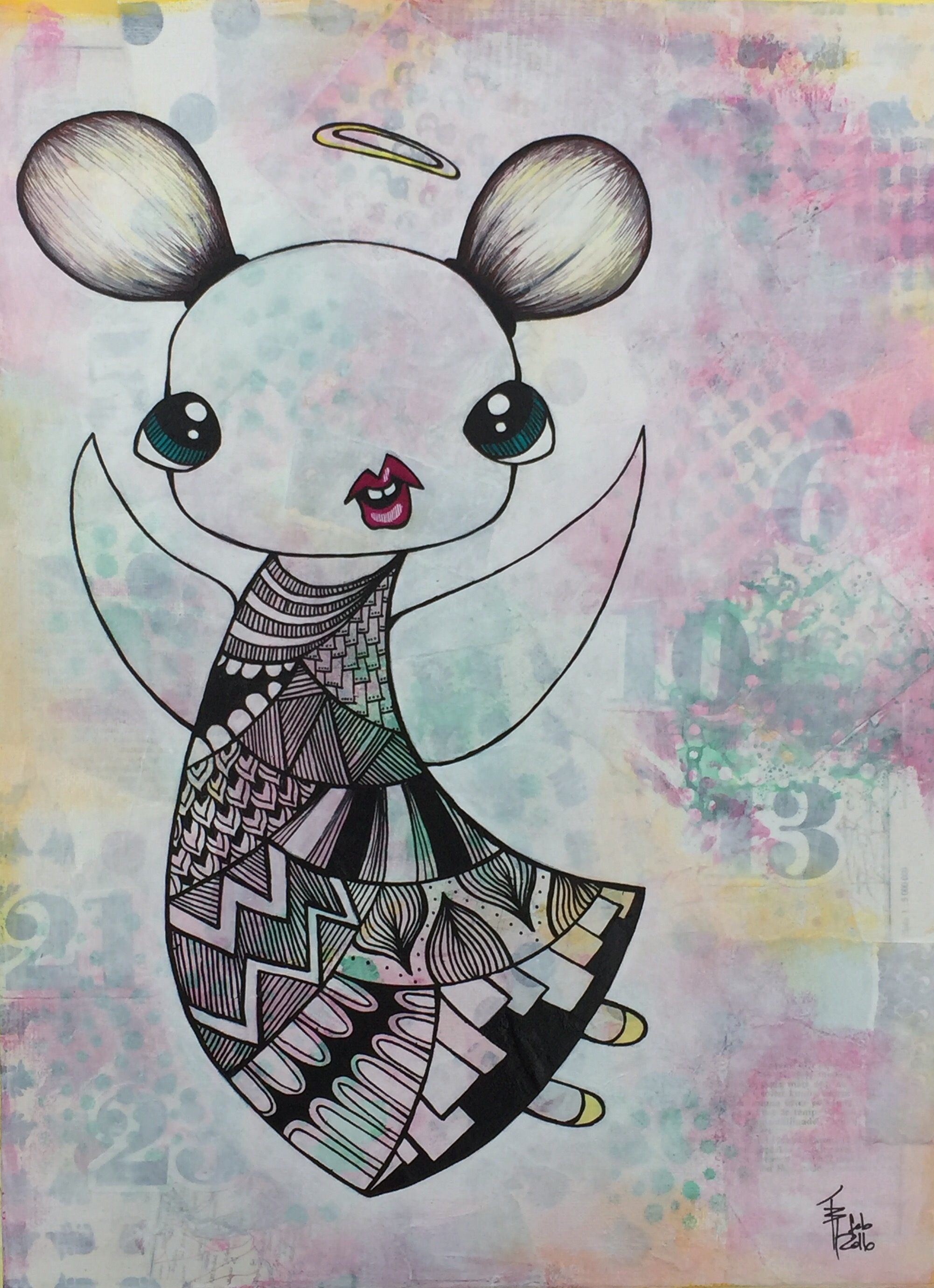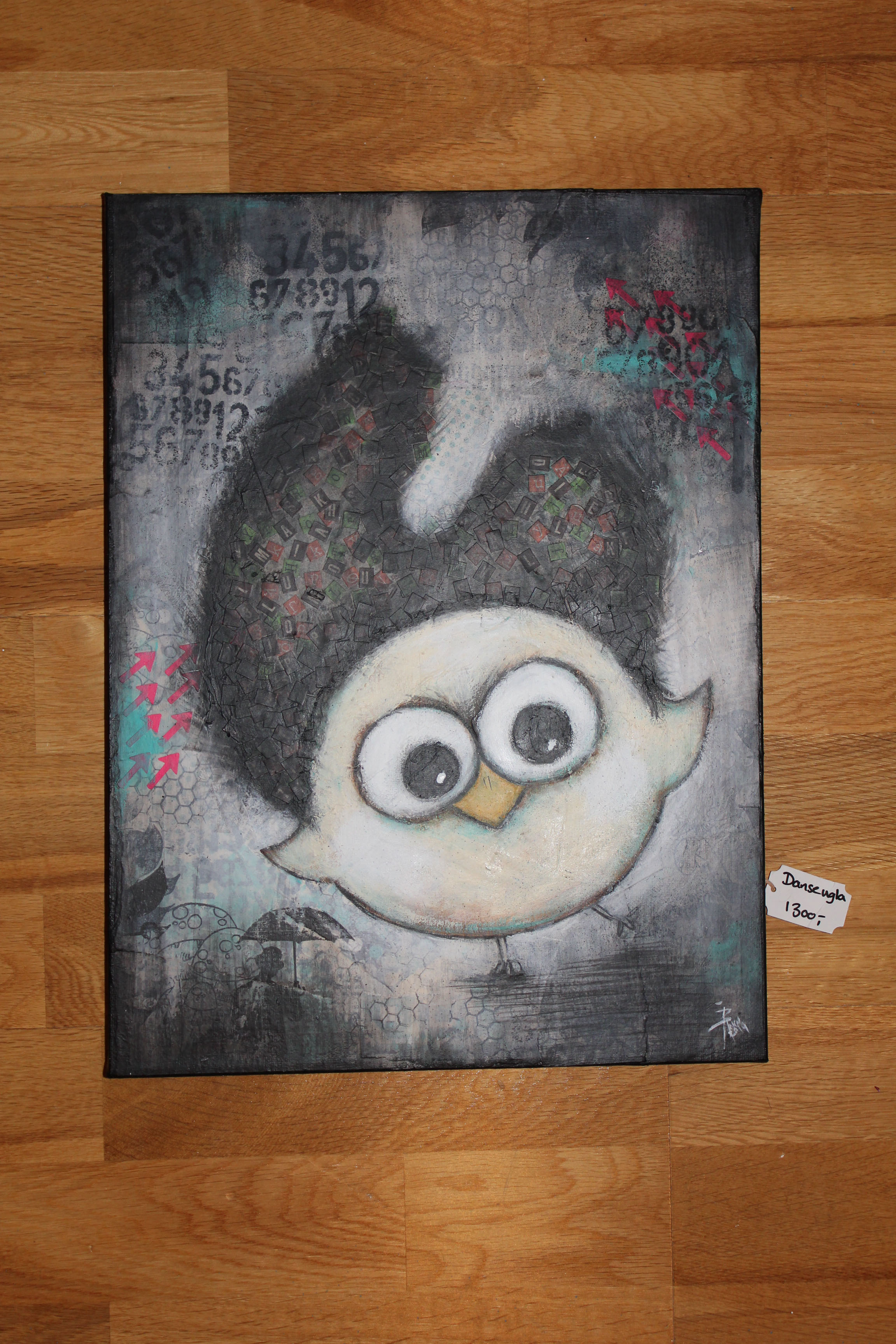 En engeldude. Mixedmedia på lerret, 30x40cm.