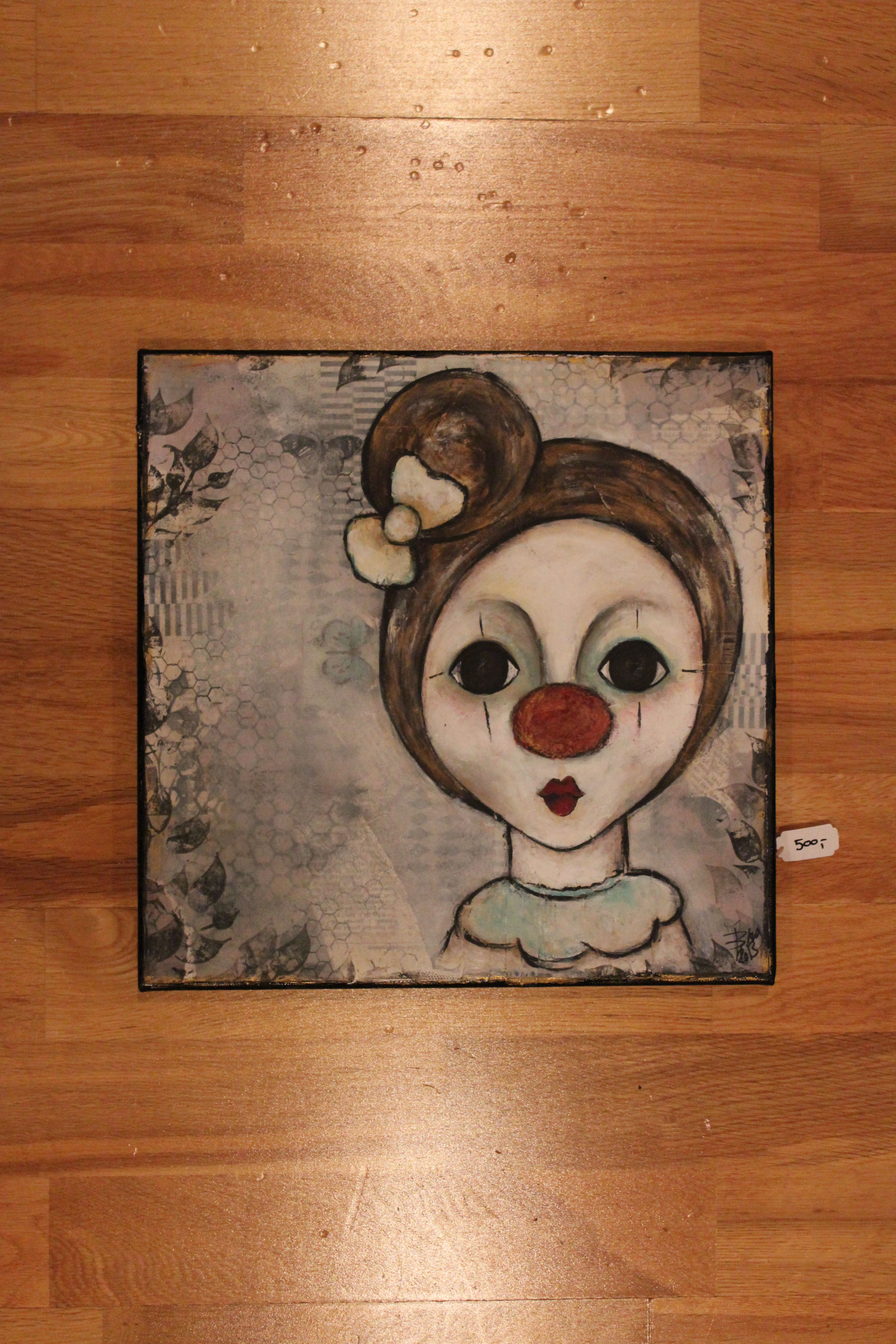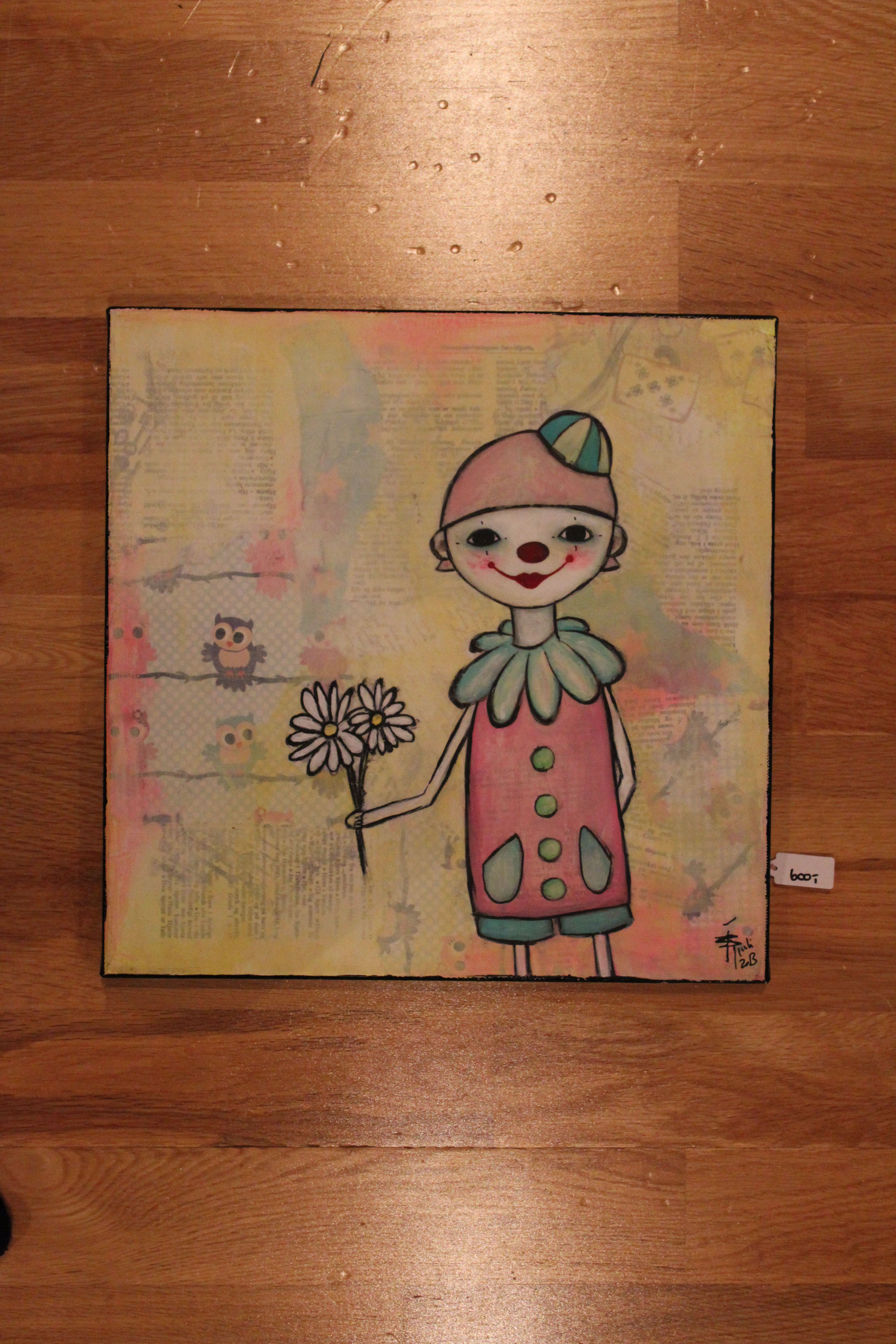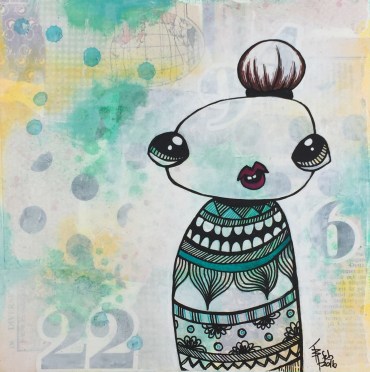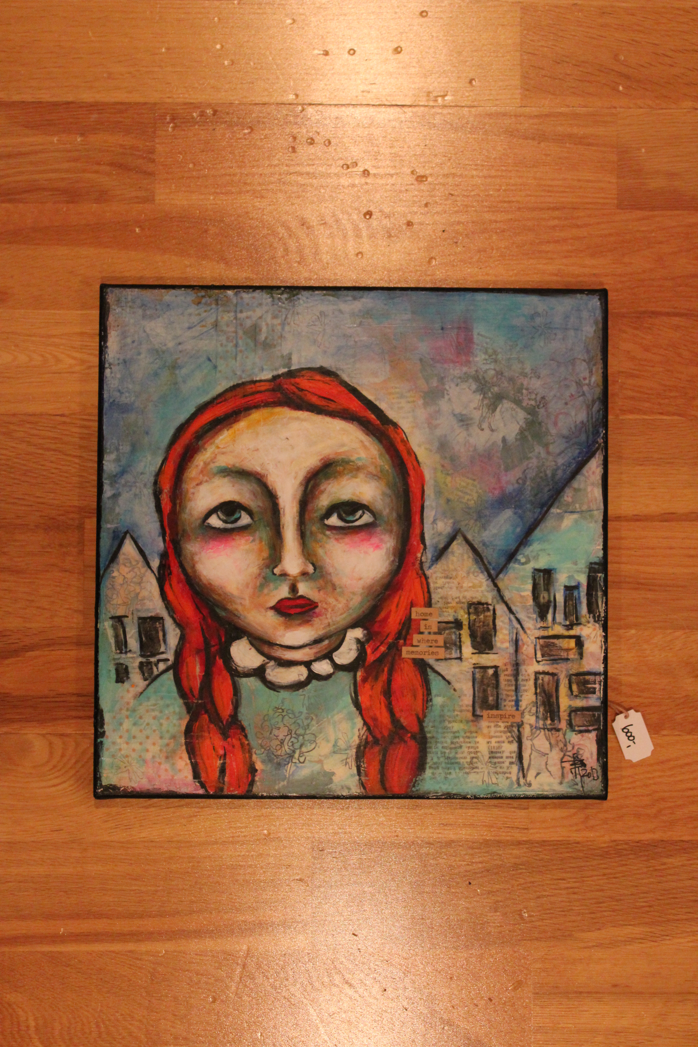En engeldude. Mixedmedia på lerret, 30x40cm.