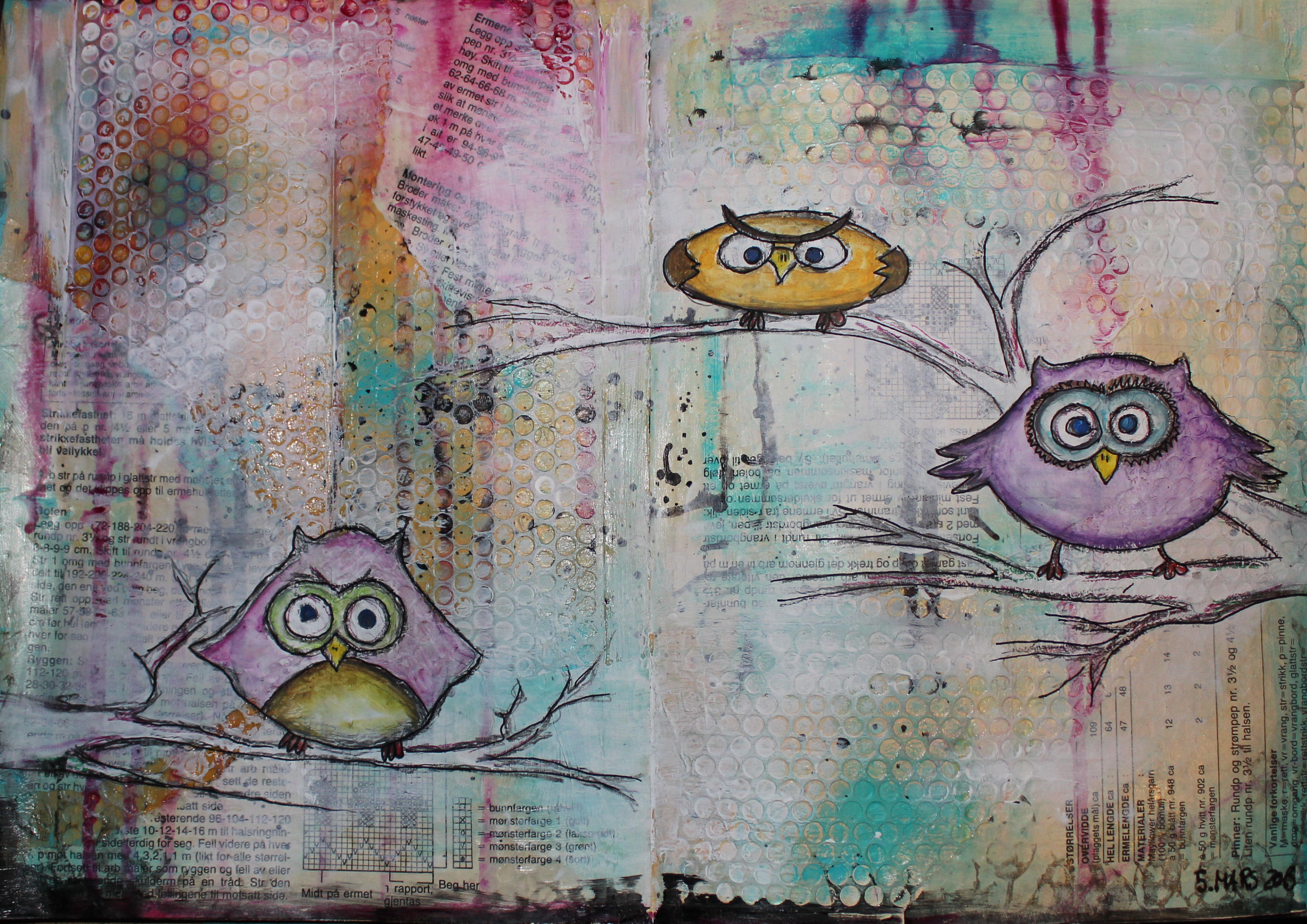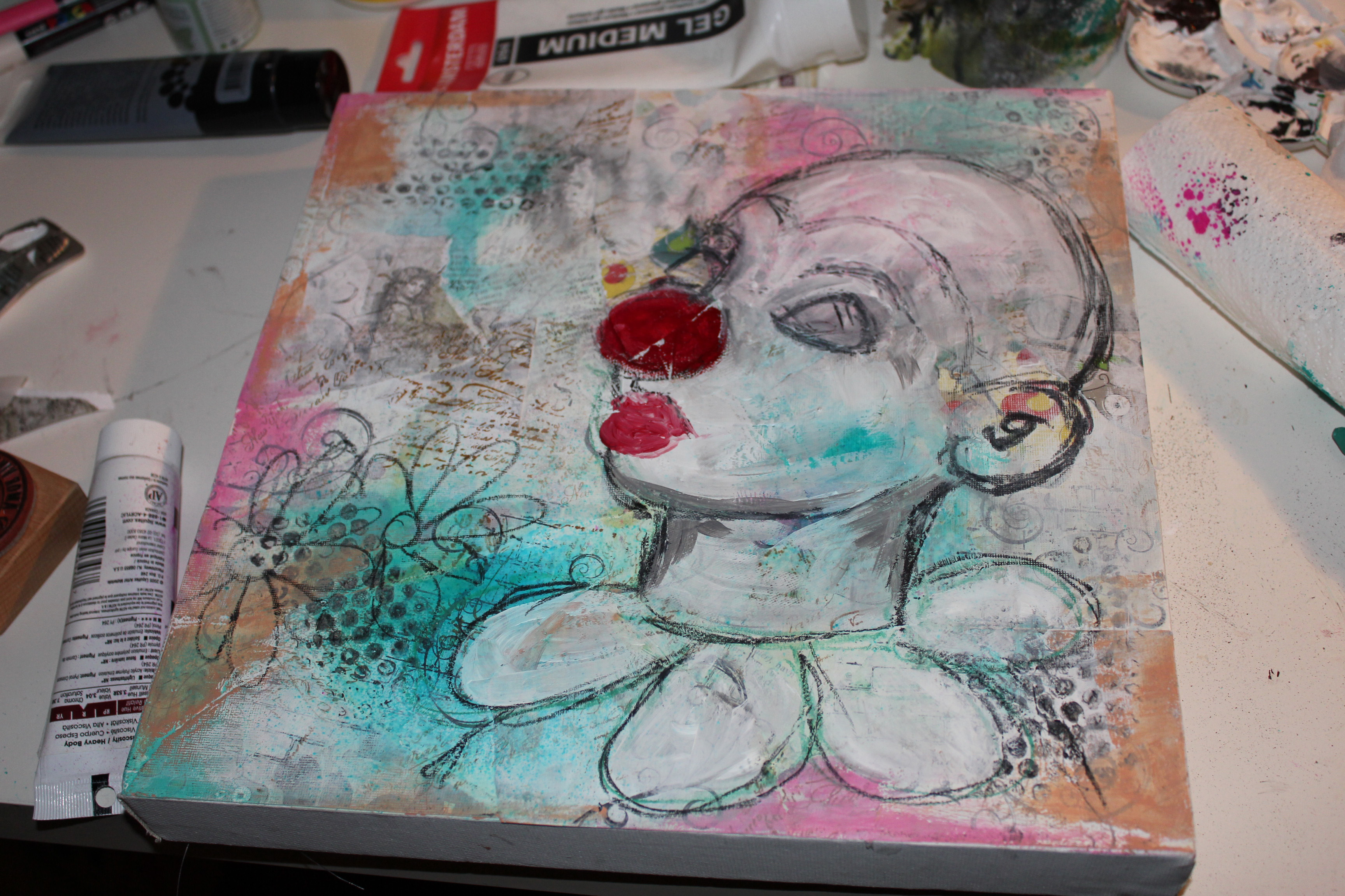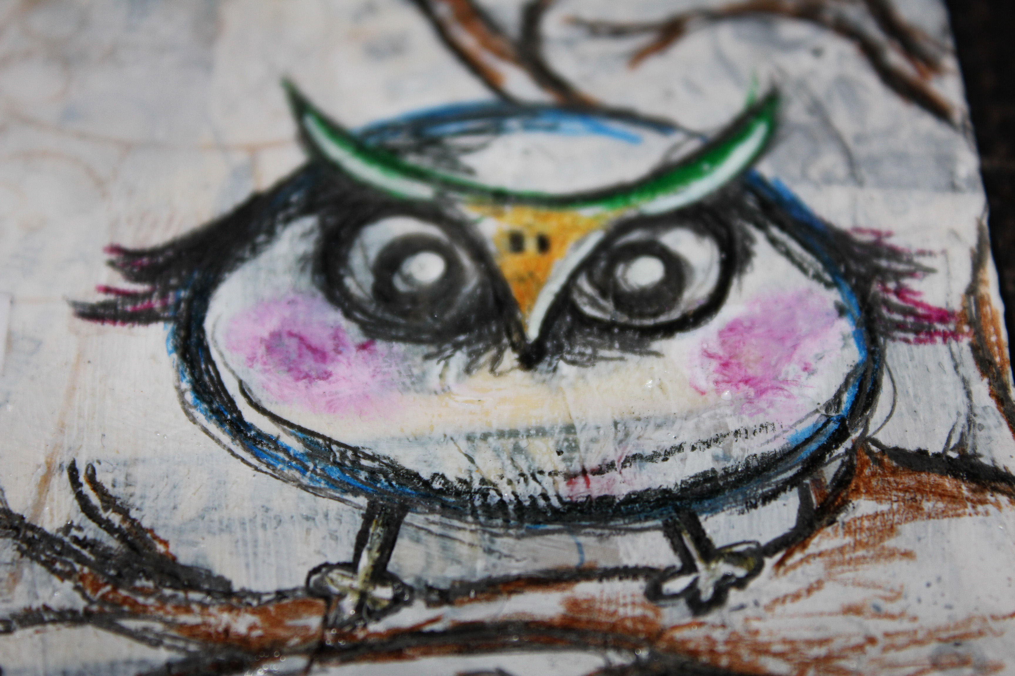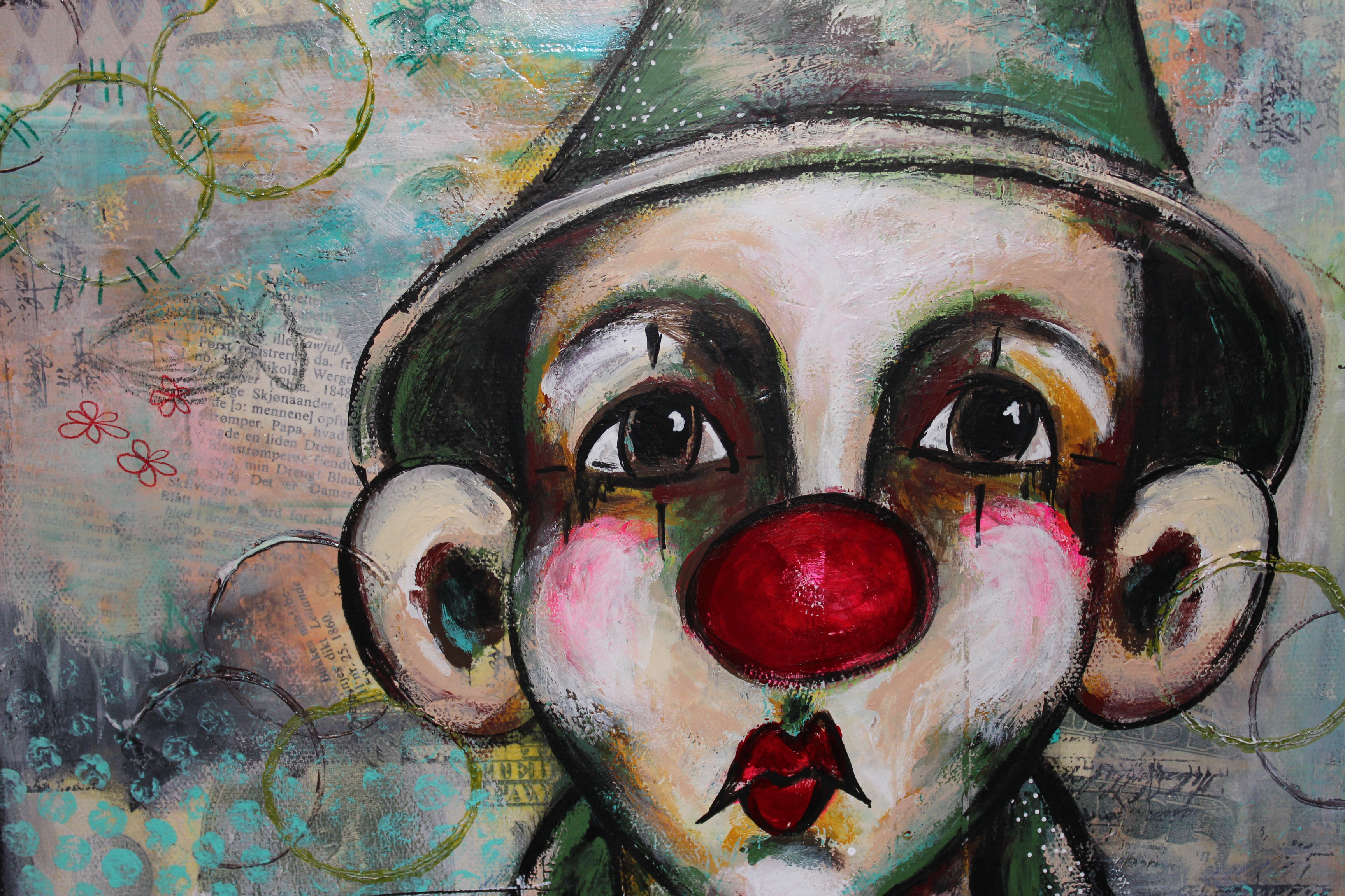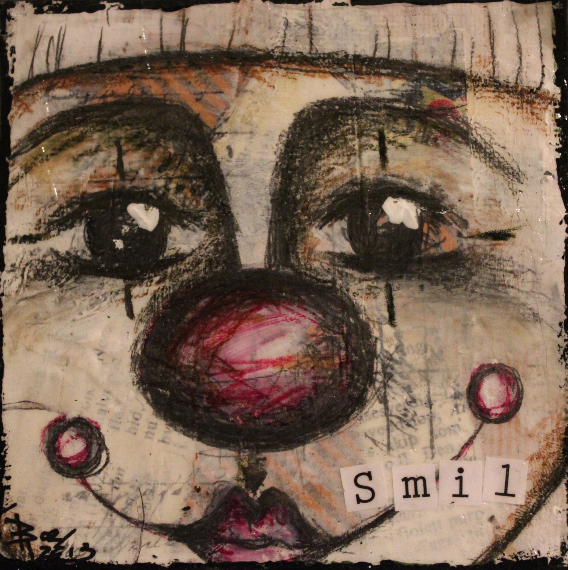 Etter å ha vært litt små syk i helgen begynner pustegangene å åpne seg stadig mer og mer – og litt kreativitet måtte ut. I forrige uke la jeg ut bilder av noen påbegynte mini-kunstverk som jeg skal lage magneter ut av. I dag fant jeg frem blyanter og farger og gikk løs på disse bakgrunnene. Jeg hadde en plan om å tegne klovner, men kreativiteten ønsket å gå en annen retning i dag. Så da ble det slik.