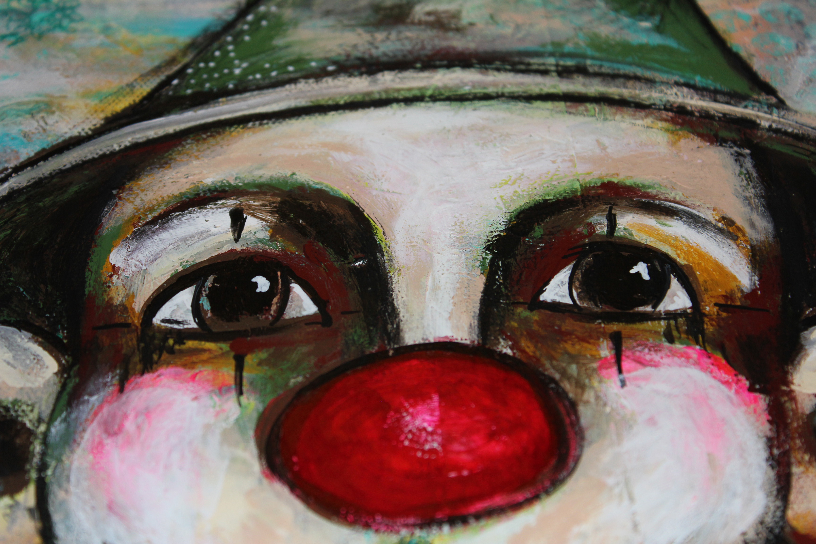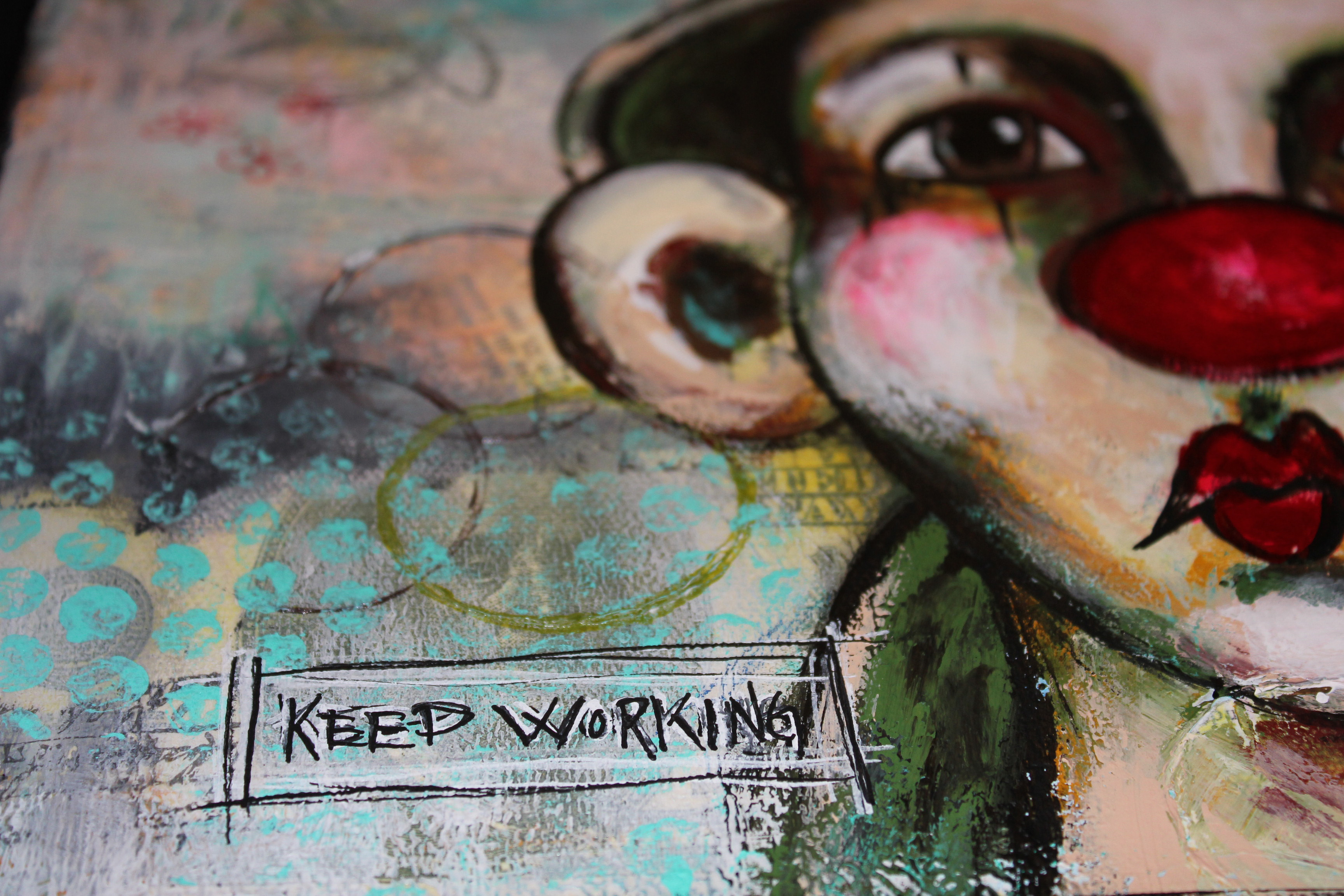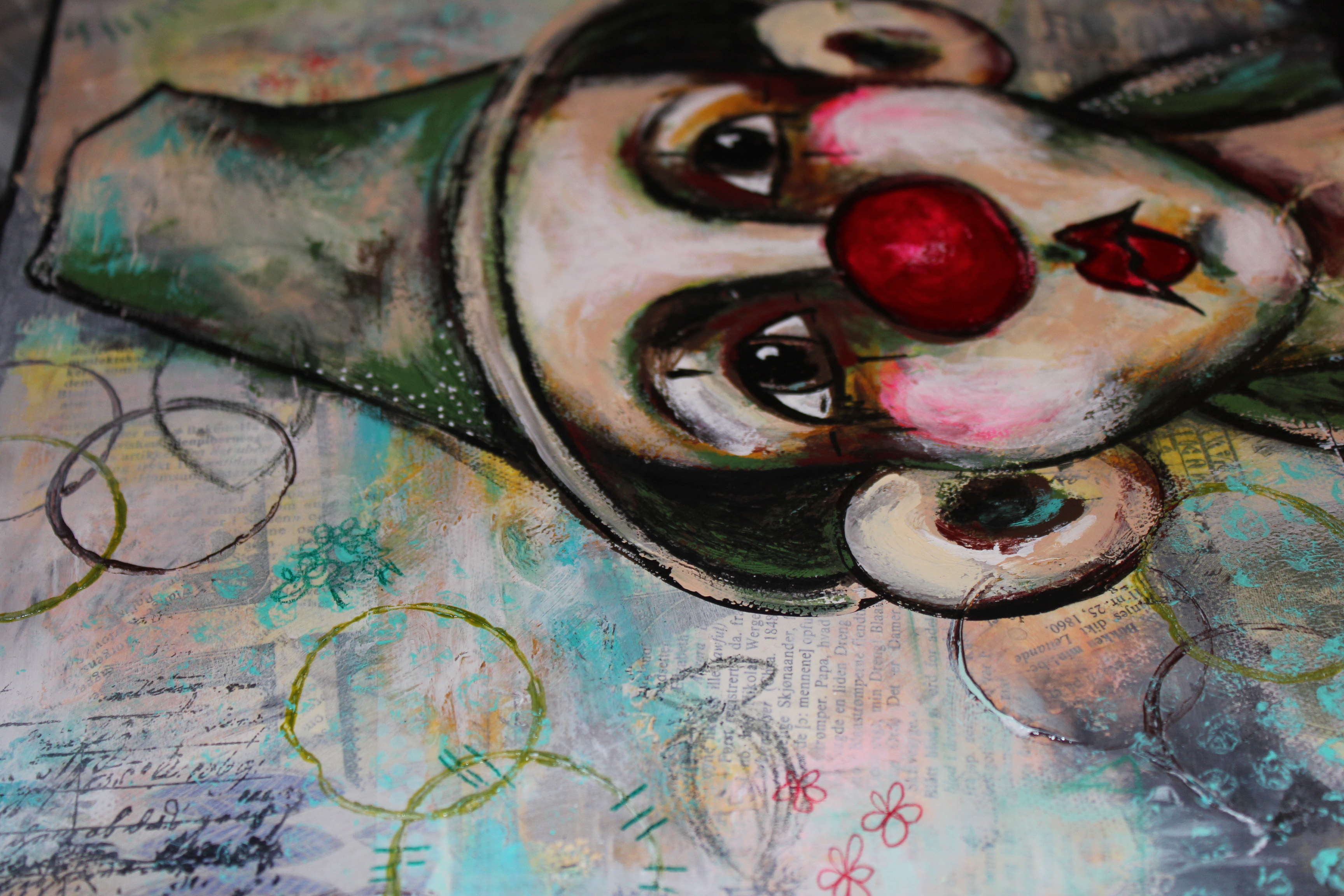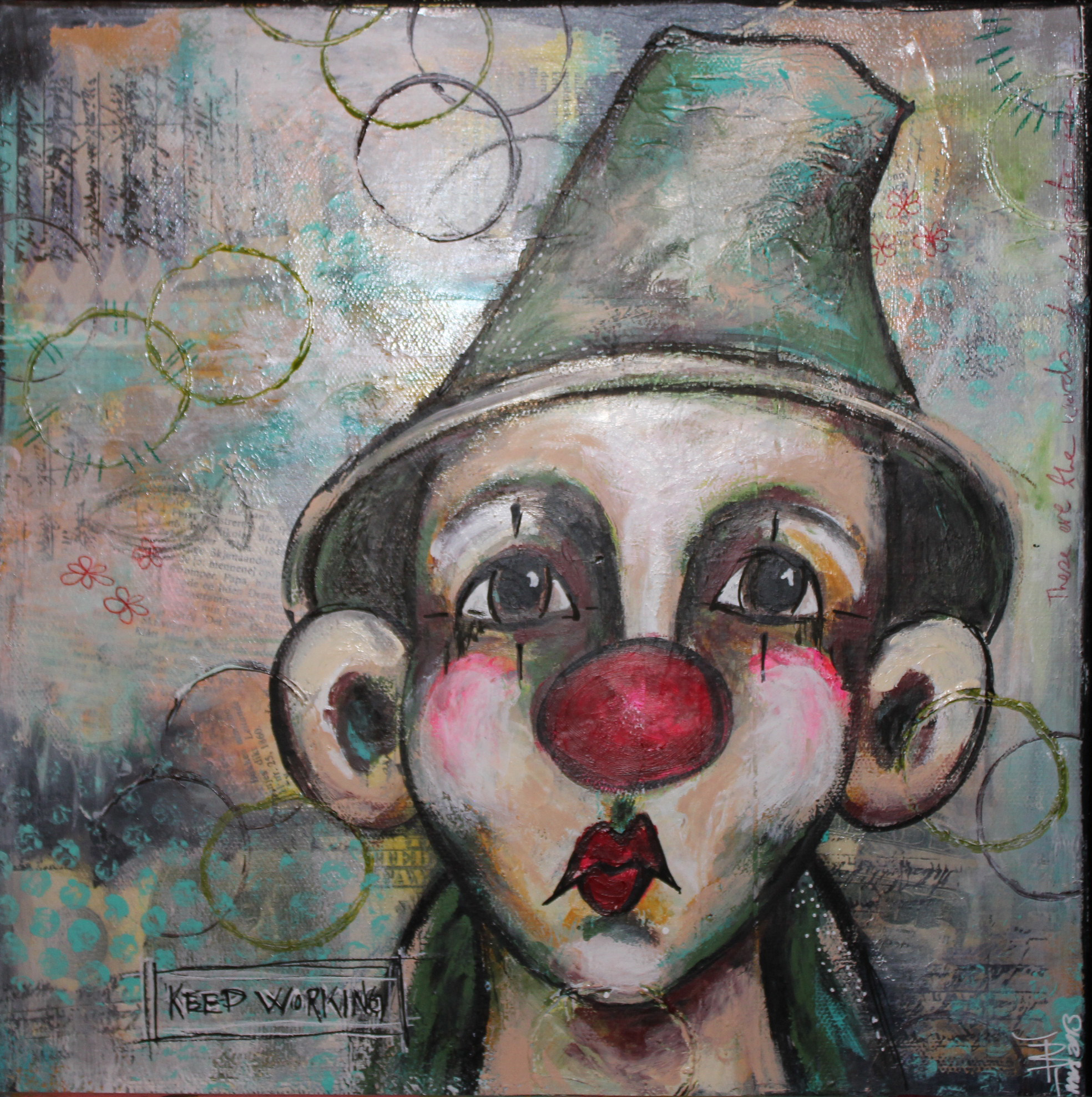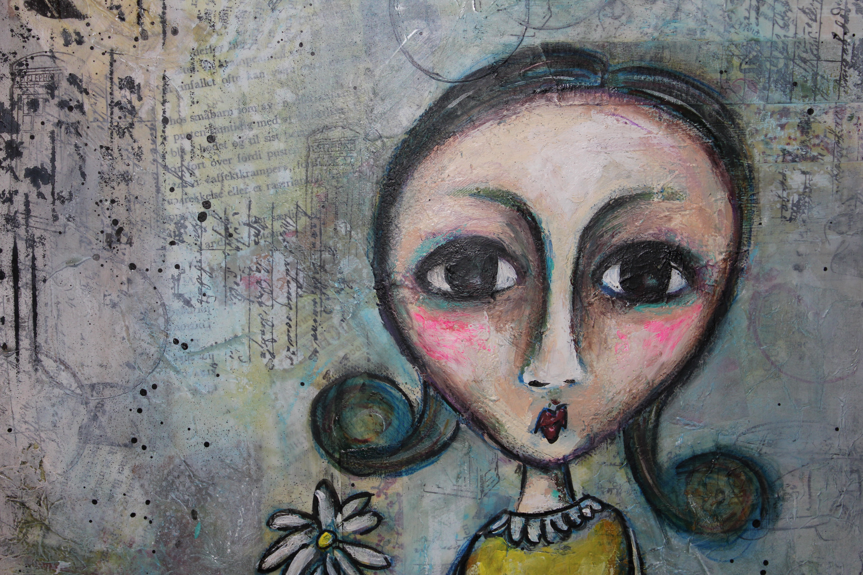 Etter å ha vært litt små syk i helgen begynner pustegangene å åpne seg stadig mer og mer – og litt kreativitet måtte ut. I forrige uke la jeg ut bilder av noen påbegynte mini-kunstverk som jeg skal lage magneter ut av. I dag fant jeg frem blyanter og farger og gikk løs på disse bakgrunnene. Jeg hadde en plan om å tegne klovner, men kreativiteten ønsket å gå en annen retning i dag. Så da ble det slik.